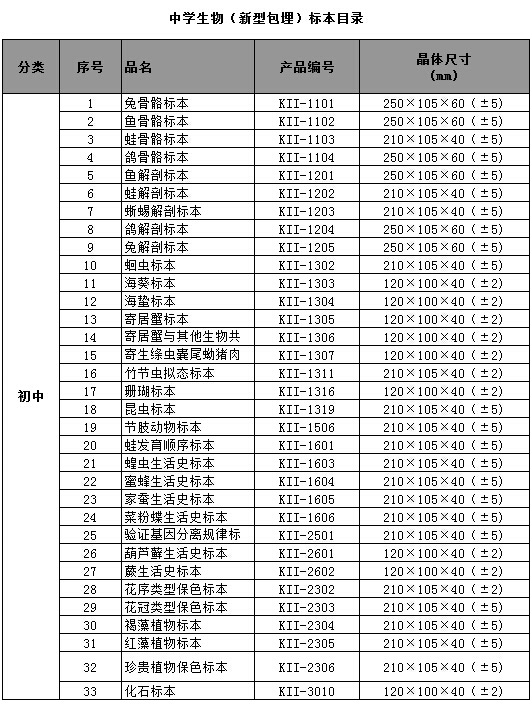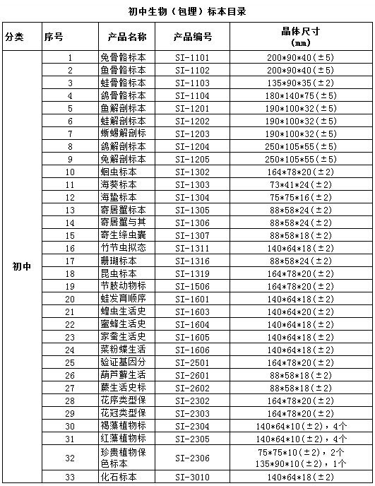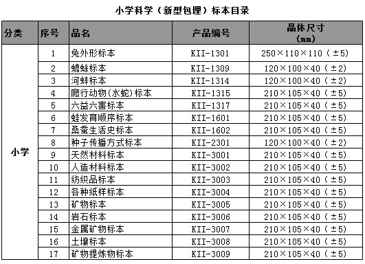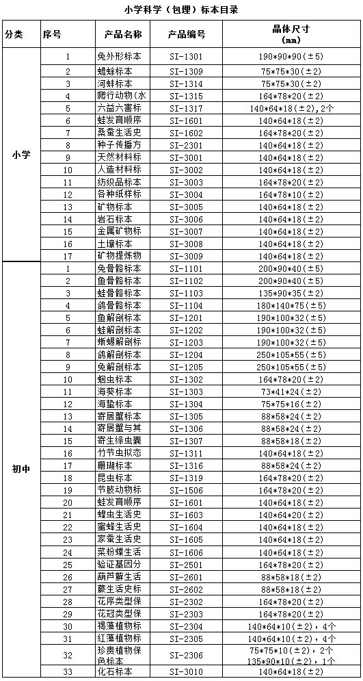 中小學標準配備系列包埋標本涵蓋了國家中小學標準配備標本要求的所有標本品種,包括植物外形、植物生活史、植物結構、動物外形、動物生活史、動物結構、動物骨骼、動物解剖,礦物等標本產品。產品符合國家教育部行業(yè)標準、企業(yè)標準、以及行業(yè)通行的安全標準,與教學大綱緊密配套,是中小學自然生物課堂的直觀教材和先進教學用具。