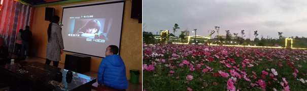 吃好,喝好后,員工們紛紛投入K歌、乒乓球等活動,或者徜徉在花海中,花香襲人,微風輕拂,讓人心曠神怡,放松心情。