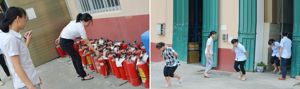 演練前消防設(shè)備清點(diǎn) 在消防安全員的指揮下應(yīng)急疏散演練